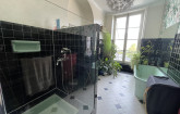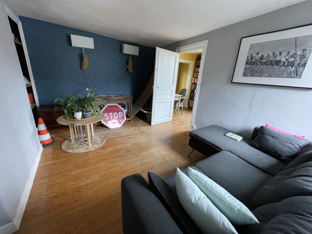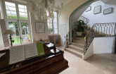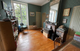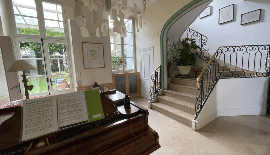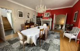 Salon avec cheminée et salon musique, salle à manger, cuisine aménagée, buanderie et WC.