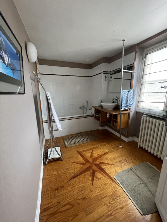 1er étage : Bel espace parental avec 1 chambre, 1 bureau, salle de bains avec baignoire et douche, 2 chambres, salle d'eau avec WC.