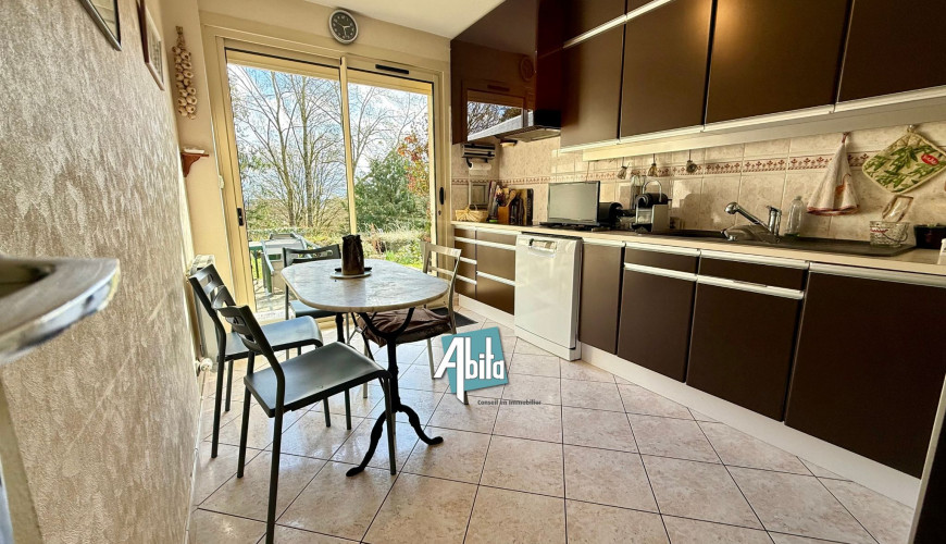 La cuisine, conviviale et fonctionnalité, idéale pour recevoir.