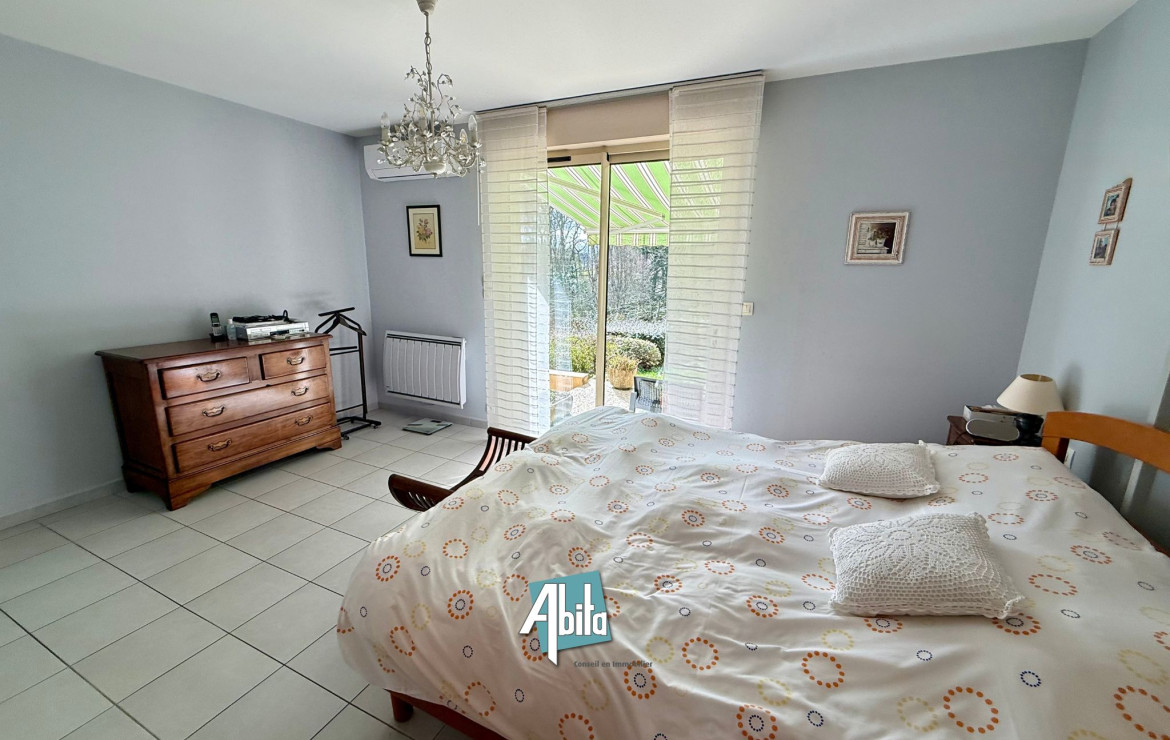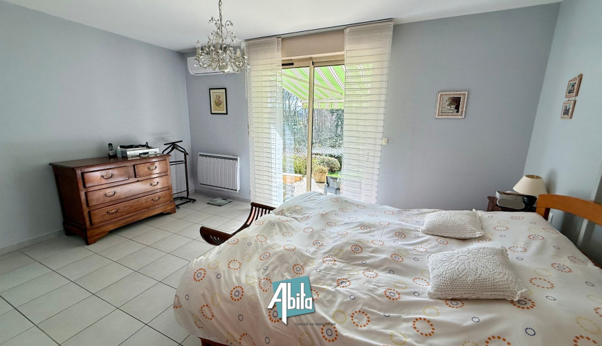 Une chambre indépendante supplémentaire avec salle d’eau, idéale pour accueillir des amis, un adolescent ou aménager un espace professionnel, complète l’ensemble.