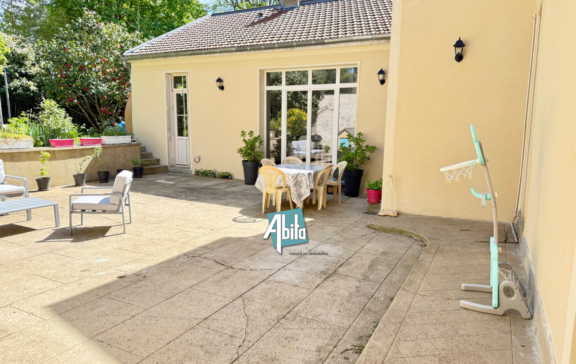 À l’extérieur, vous profiterez d’un superbe jardin arboré de 250 m², agrémenté d’une exceptionnelle terrasse de 80 m², offrant un cadre idéal pour les moments de détente et de réception.